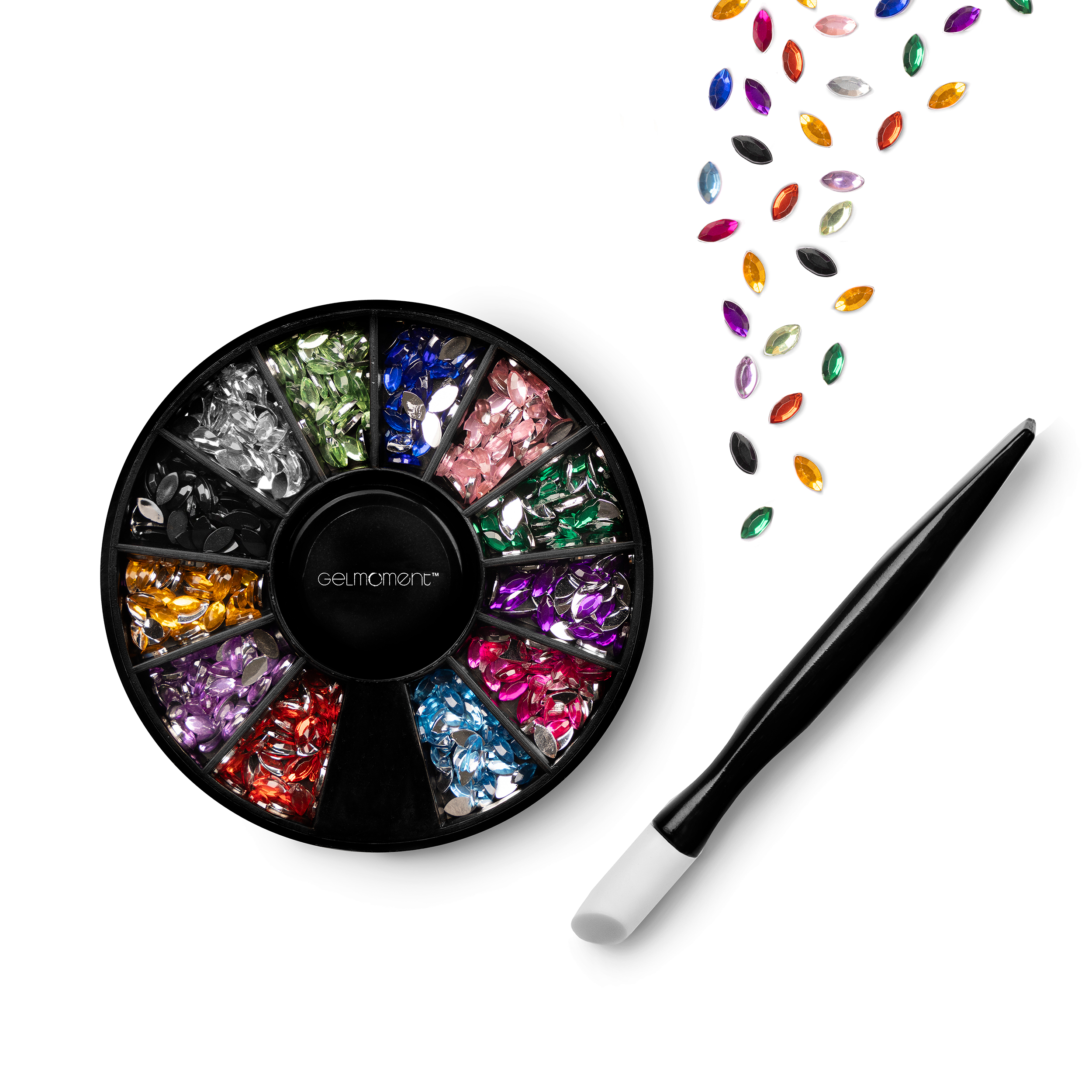 Marquise mini jewels comes with 12 colours and an applicator stick, and comes packaged in a GelMoment organza sachet.