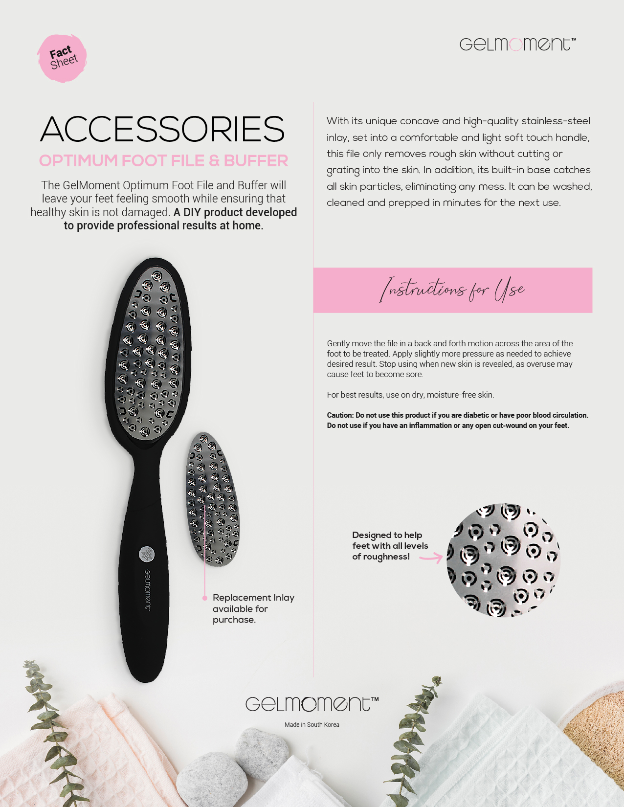 A comfortable and light soft touch handle, along with it's unique concave high-quality stainless steel inlay, this file only removes rough skin, ensuring that healthy skin is not damaged.